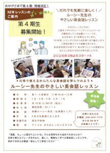 *『ルーシー先生のやさしい英会話レッスン』第4期生募集のご案内*